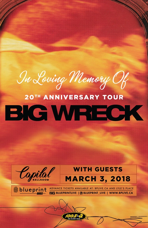 Big Wreck celebrates their 20th Anniversary with the In Loving Memory Of Tour in Victoria at Capital Ballroom - Sugar Nightclub on Wednesday, March 3rd with guests to be announced - Doors at 8pm